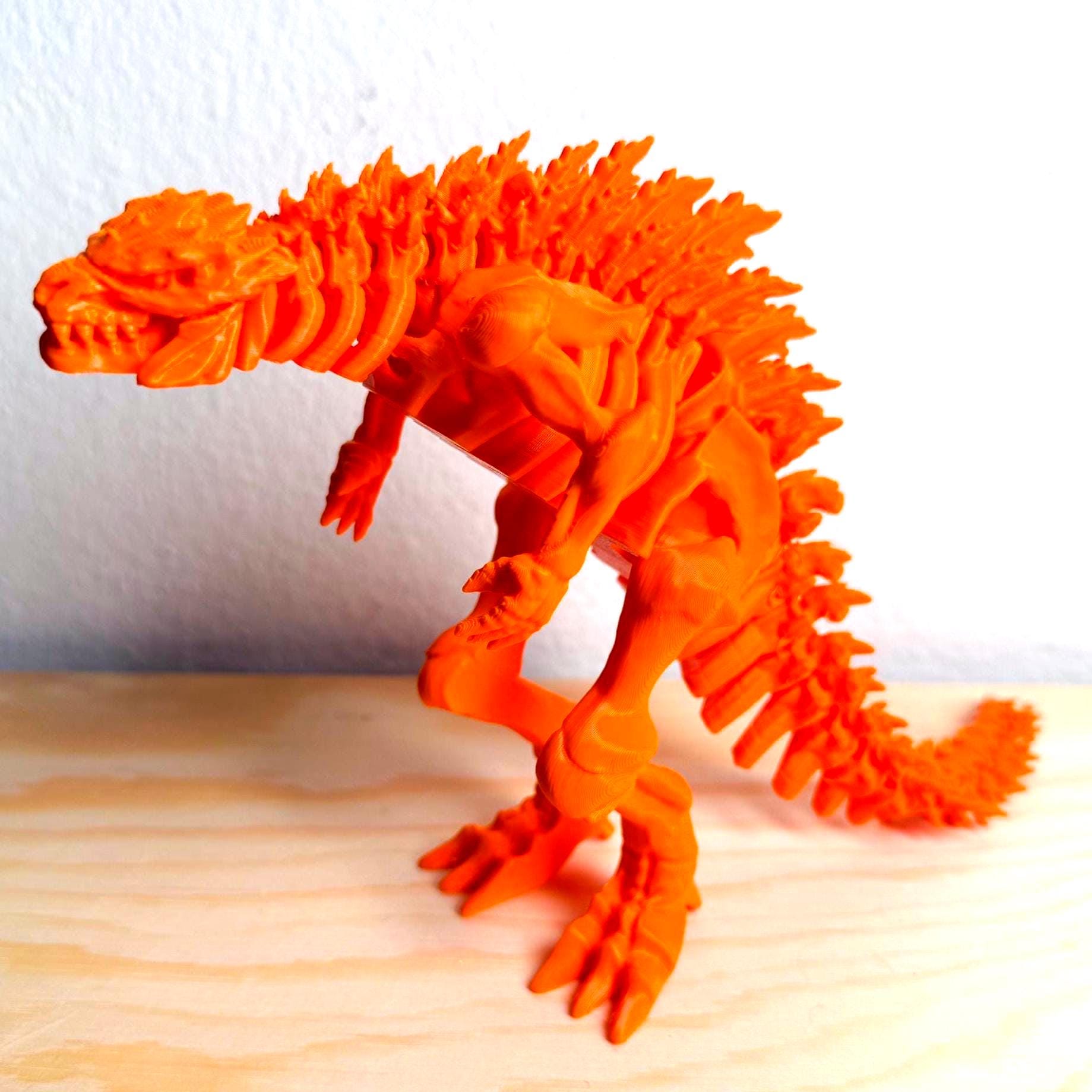 Bright Orange Fully Articulated Skeletonized Godzilla Figure Bone Fossil Kaiju
